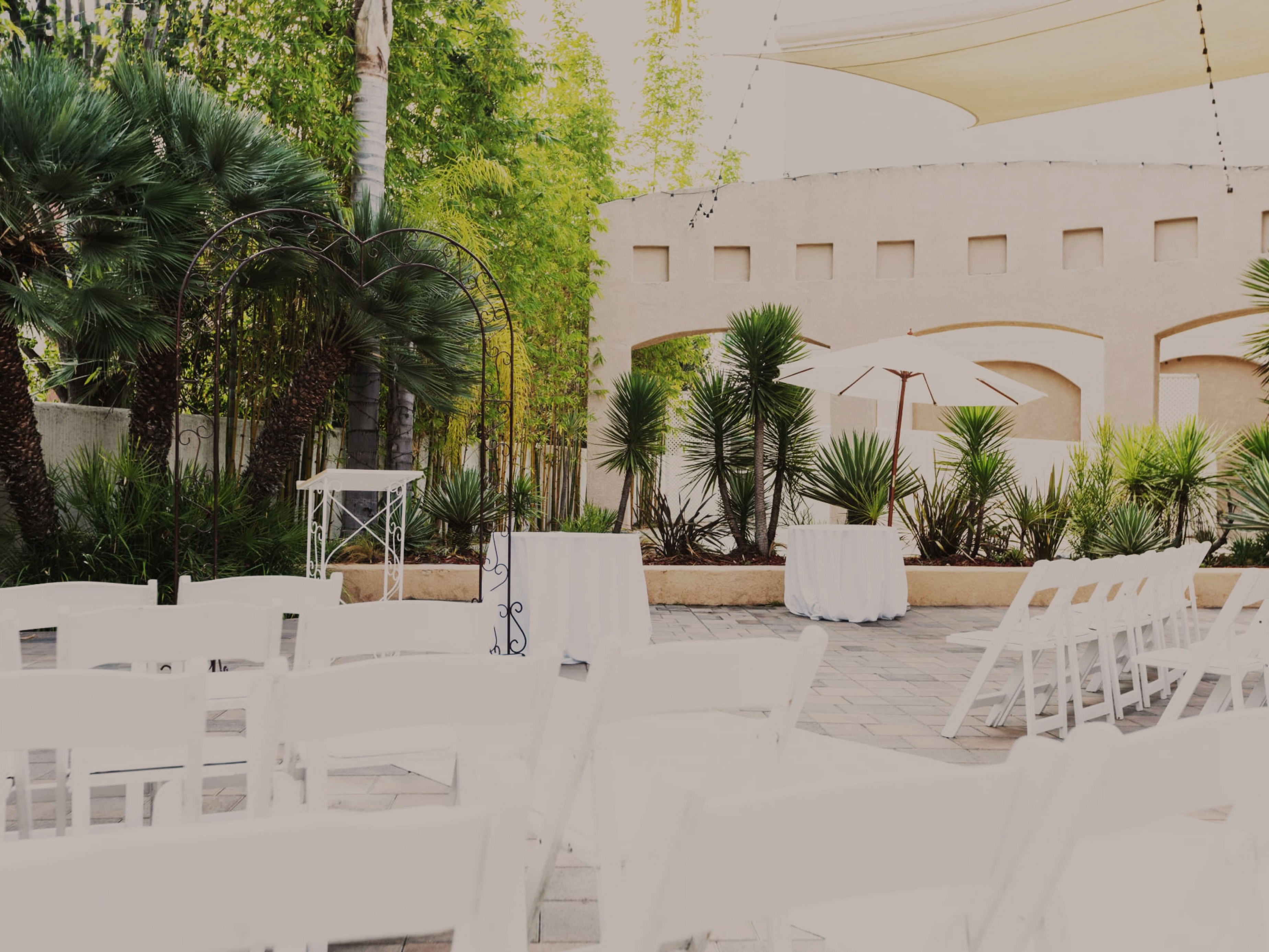 The Palm Terrace is perfect for hosting a range of events, from intimate gatherings to grand celebrations. Event types include weddings, holiday parties, fundraisers, celebrations of life, dating mixers, birthdays, quinceaneras, evening cocktail hours, and parties of all types.